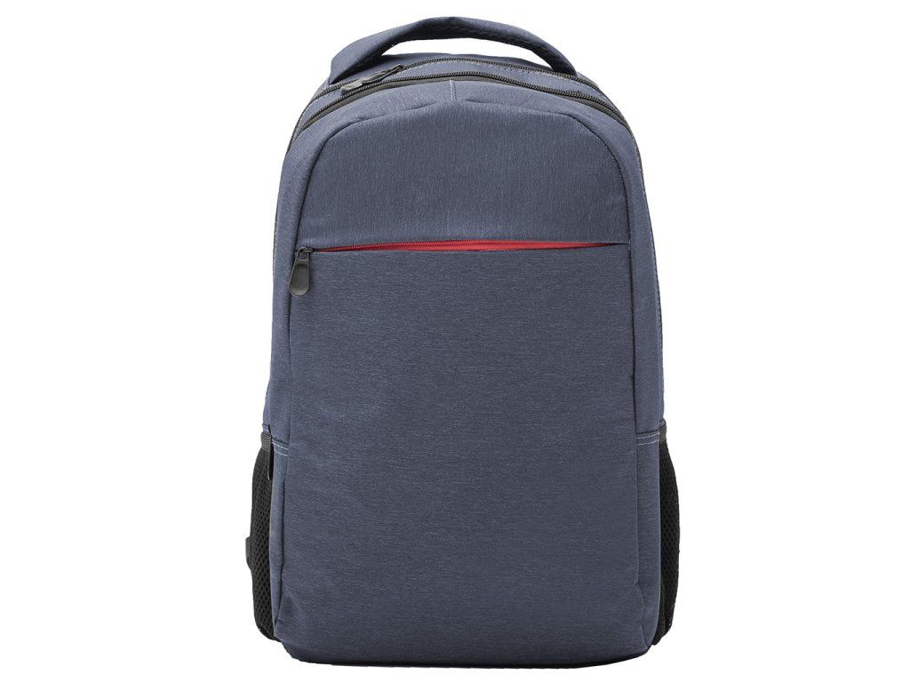 Batoh na notebook z žíhané látky.Batoh má dvojitý popruh na rameno s vyztužením a speciální ucho do ruky,dvě centrální kapsy, kapsu na přední straně s kontrastním zipem a postranní kapsy ze síťoviny.Doplňkové parametry
