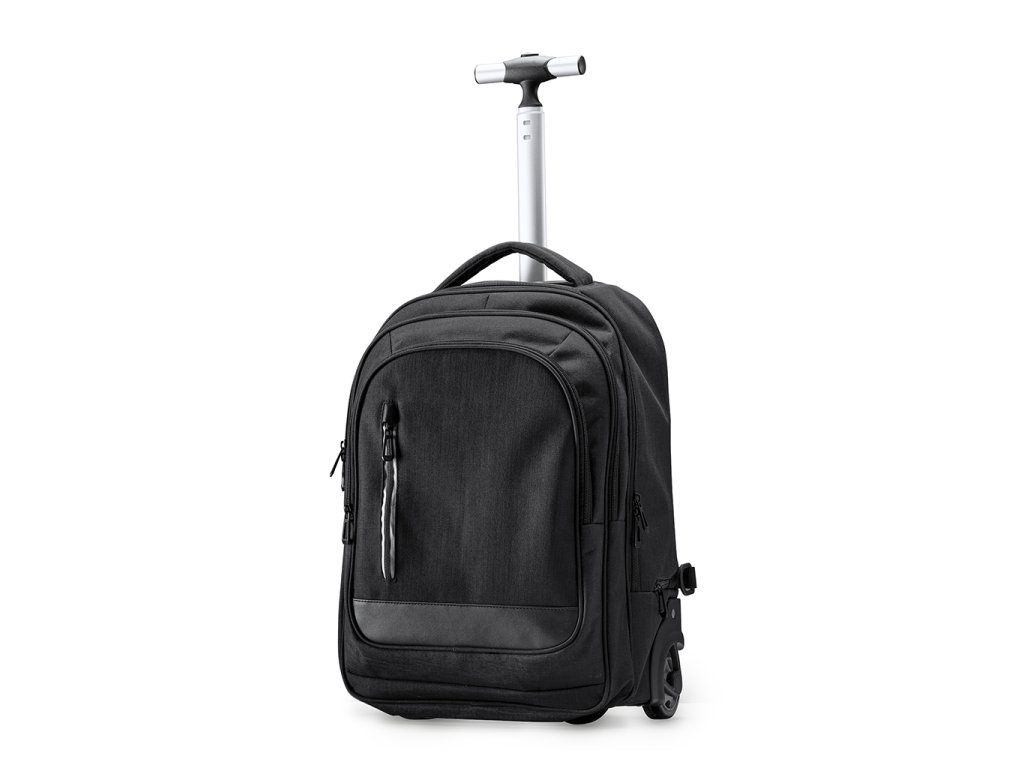 Batoh na kolečkách vyrobený z vřesového polyesteru 300D. Hlavní prostorná kapsa s vnitřní polstrovanou přihrádkou, ideální pro notebooky do velikosti 15". Dvě kapsy s vnitřními přihrádkami a přední kapsa. Vysoce kvalitní a odolný skelet. Nastavitelné polstrované ramenní popruhy. Kryty koleček odolné proti ušpinění.Doplňkové parametry